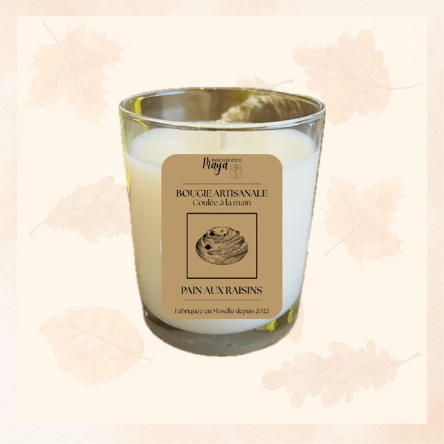 Redécouvrez le plaisir d’un matin à la boulangerie avec notre bougie parfumée Pain aux Raisins, une création olfactive ultra-gourmande qui embaume votre intérieur comme si une viennoiserie tout juste sortie du four vous attendait sur la table.